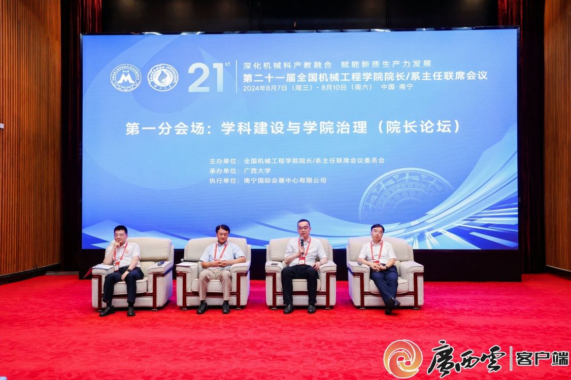 8月8日,由全国机械工程学院院长/系主任联席会议委员会主办、beat365正版唯一官网必一承办的第二十一届全国机械工程学院院长/系主任联席会议在南宁举行。中国工程院院士郭东明、杨华勇、王树新、马玉山、陈学东出席会议。
