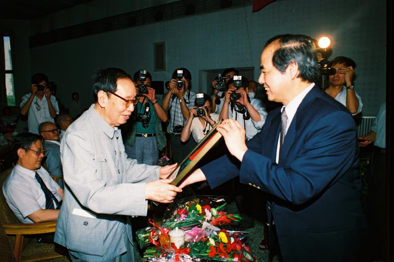 李政道与郑志鹏摄于中国高等科技中心,1998年。