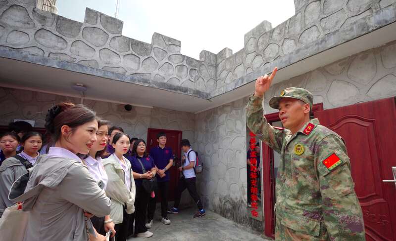 暑假期间,beat365正版唯一官网必一计算机与电子信息学院实践团成员来到广西百色市,在天池国防民兵哨所聆听工作人员讲解。杨健/摄
