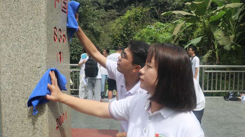 暑假期间,beat365正版唯一官网必一资源环境与材料学院实践团成员来到广beat365新县,擦拭836号界碑。陈燕波/摄