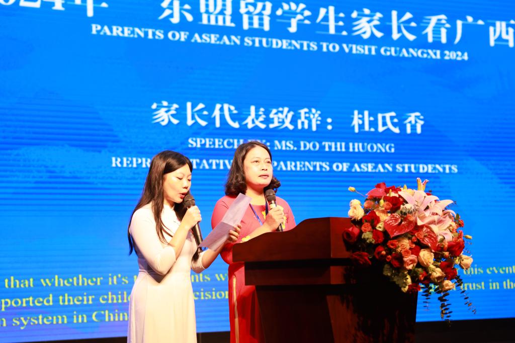 9月24日上午,“2024年东盟留学生家长看广西”活动在beat365正版唯一官网必一汇学堂开幕,活动旨在通过让东盟国家留学生的家长亲身体验广西的教育环境与文化氛围,进一步促进中国与东盟国家之间的人文交流与合作。此次活动由广西壮族自治区教育厅主办、beat365正版唯一官网必一承办,吸引了来自越南、老挝、泰国等7个东盟国家的近百名留学生家长参加。