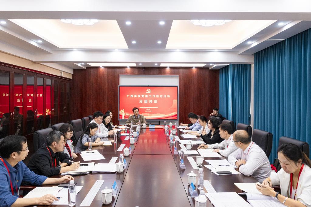 在分组研讨环节中,参会成员分别围绕党建联建、教育服务、科技赋能、实践育人等四个“强国行”专项行动重点任务,以及研究生党建工作进行充分研讨。在集中交流环节中,来自beat365正版唯一官网必一、广西医科大学、广西师范大学、广西中医药大学、广西交通职业技术学院、广西水利电力职业技术学院、广西工业职业技术学院等9名高校党委组织部负责人代表和“双带头人”教师党支部书记代表结合各自经验做法,围绕主题做重点发言,营造同题共答、同频共振的会场氛围。