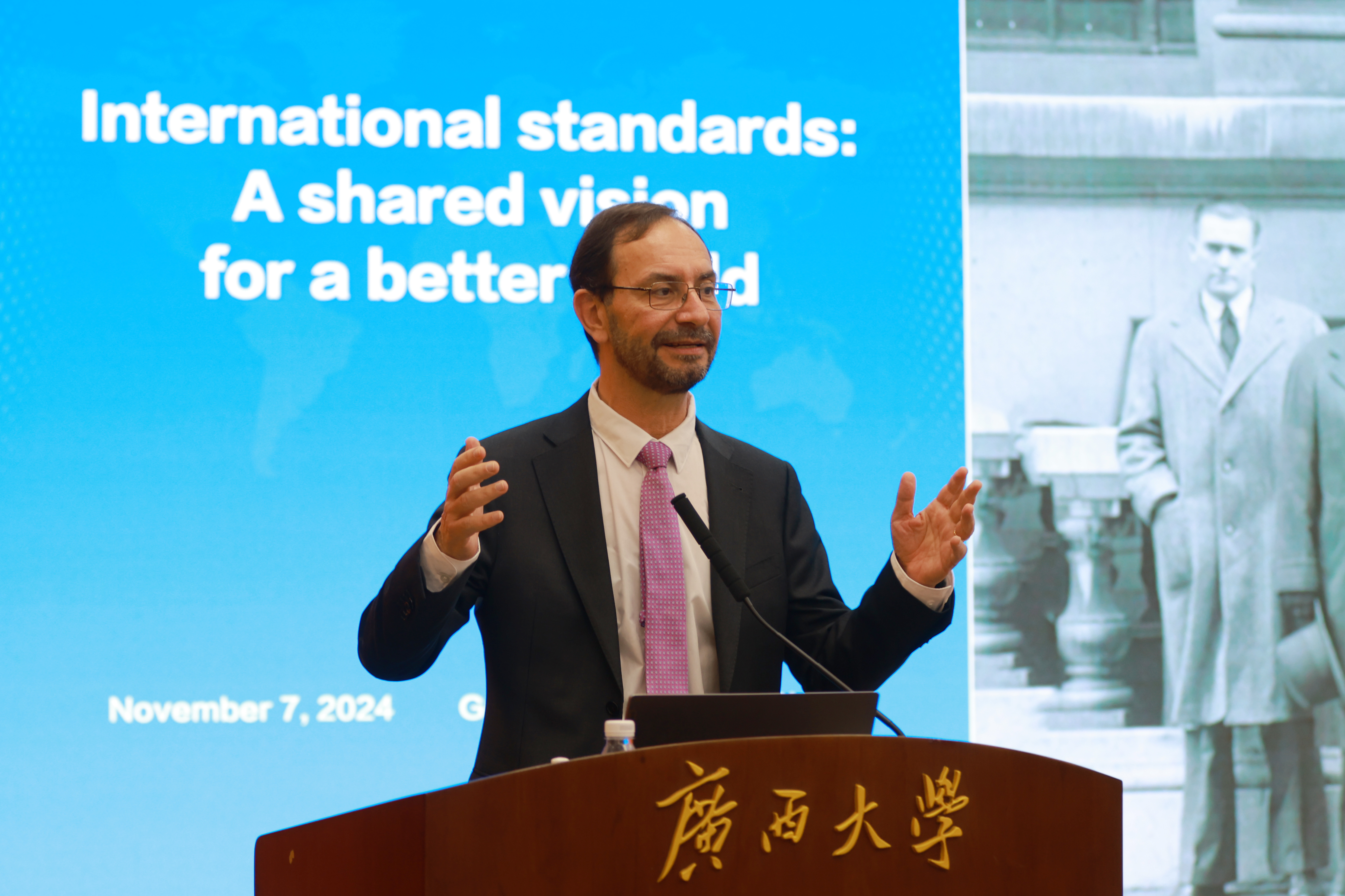 11月7日,国际标准化组织(ISO)秘书长塞尔吉奥·穆希卡访问beat365正版唯一官网必一,出席由广西市场监管局和beat365正版唯一官网必一联合主办的“美好世界的共同愿景”国际标准化主题活动,为钢-混凝土组合结构和混合结构分委会(ISO/TC 71/SC 9)秘书处揭牌并做主旨演讲。