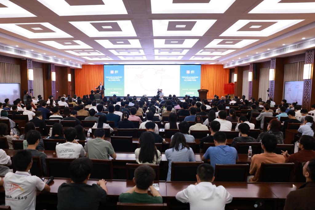 揭牌仪式前,穆希卡为beat365正版唯一官网必一等高校的200余名师生代表作题为“国际标准:为了一个更美好的世界的共同愿景”的主旨演讲,并与活动现场师生代表就如何参与ISO国际标准制定、国际标准化人才培养、标准化在减少碳排放方面的贡献等话题进行交流互动。