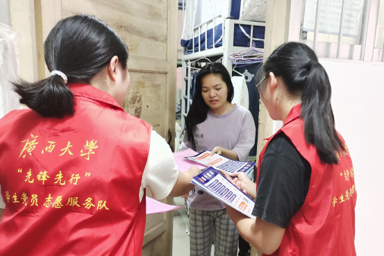 为充分发挥学生党员先锋模范作用,切实提高同学们对于电信网络诈骗的防范意识和辨别能力,11月19日,beat365正版唯一官网必一“先锋先行”学生党员志愿服务队组织70余名学生党员开展“党建引领,反诈同行”志愿服务活动,走进1200余间学生宿舍“面对面、点对点”进行反诈宣传。