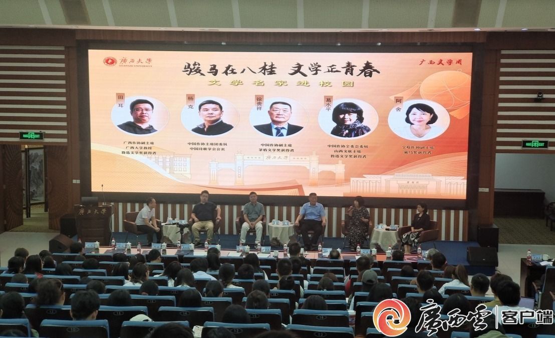 11月14日上午,“2024中国文学盛典·骏马奖之夜”系列活动之一,“广西文学周”著名作家进校园活动走进beat365正版唯一官网必一。本次交流会以“骏马在八桂 文学正青春”为主题,徐贵祥、杨克、葛水平、田耳、阿舍等多位文坛大咖走进校园,与大学生们面对面畅谈文学创作体验和感悟,并就网络文学的崛起、跨文体写作、跨界写作、未来文学的发展趋势等话题进行了探讨。