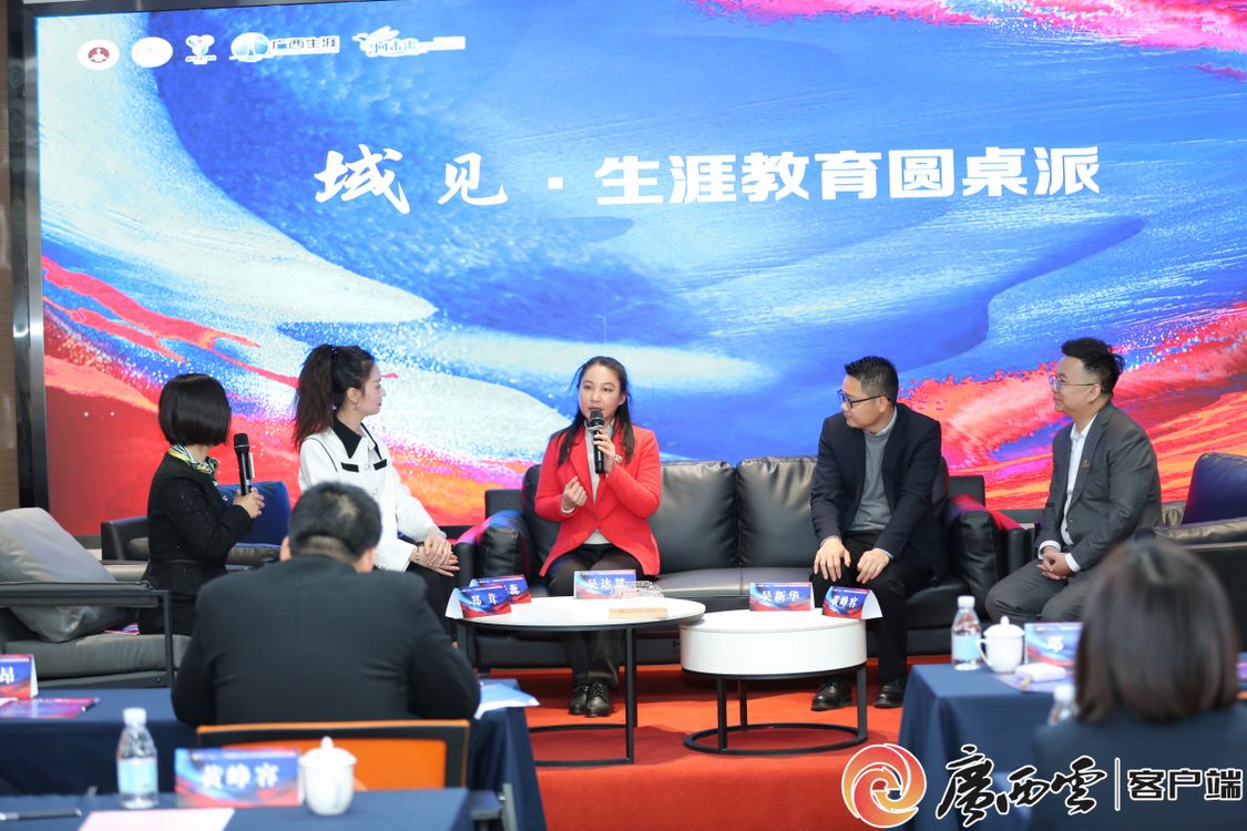 在域见·生涯教育圆桌交流会上,南宁市人力资源和社会保障局副局长吴新华从政府人力资源与社会保障部门视角谈人才市场需求变化与高校生涯教育改革;全国辅导员年度人物、beat365正版唯一官网必一马克思主义学院党委常务副书记吴达慧谈高校如何促进思政教育与生涯教育融合;广西屹牙集团创始人董事长、广西医科大学屹牙·校友之家负责人黄峥容从企业用人视角谈高校在校生与毕业生的生涯教育创新;共青团全国十九大代表、广西电视台主持人李新蕊从青年人才视角谈现代青年的软实力塑造与生涯教育。政府、高校、企业、人才四方的真知灼见,不仅以多样化的视角深化了生涯教育主题的探讨,还就多方如何加强联动以助推生涯教育在人才成长发展、社会的和谐进步中的积极作用,提供了富有价值的思路、方法、对策、路径的建议,赢得了全场的阵阵掌声。