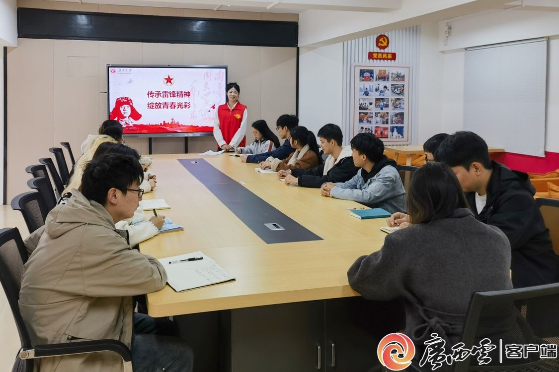 “一滴水、一颗钉、一束光,雷锋从未远去,一直都在……”来自资源环境与材料学院的学生李可,在“一站式”学生社区的党员活动室开展《传承雷锋精神,绽放青春光彩》主题宣讲志愿服务。她以“红色小故事”折射“先烈大情怀”,深情解读雷锋精神的永恒价值,并号召青年学子既要学习雷锋的精神。