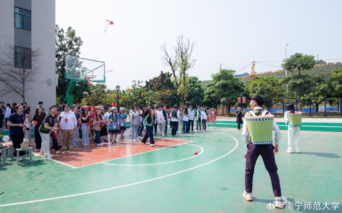 越南留学生们参加抛绣球活动。南宁师范大学供图