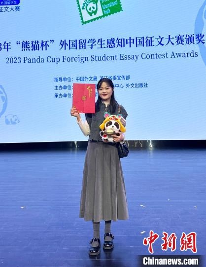 图为刘氏玄在2023年“熊猫杯”外国留学生感知中国征文大赛颁奖典礼上留影(资料图)。(受访者供图)