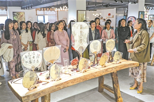 中越青年学生在灵川县定江镇参加中越大学生非遗体验活动,促进文化交流,增进情谊。 阳海翔/摄