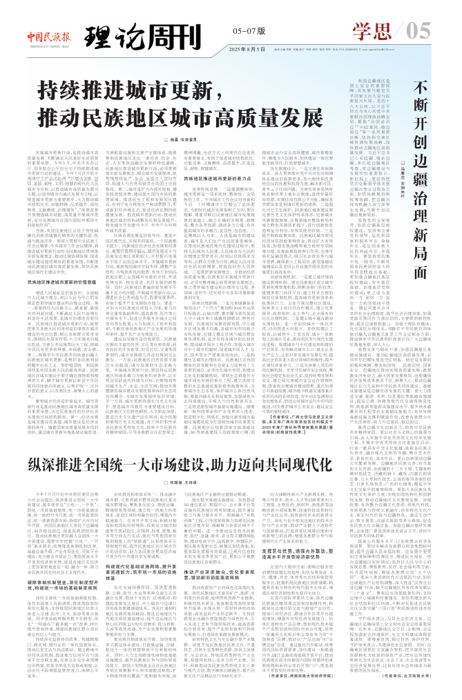 当前,我国民族地区正处于传统城镇化向新型城镇化转型的关键阶段,机遇与挑战并存。要深入贯彻中央民族工作会议精神、中央城市工作会议精神,将推进城市更新行动作为民族地区贯彻落实新发展理念、推动区域协调发展、促进城市建设提质增效的重要举措,不断推动民族地区城市高质量发展,加快民族地区现代化建设步伐。