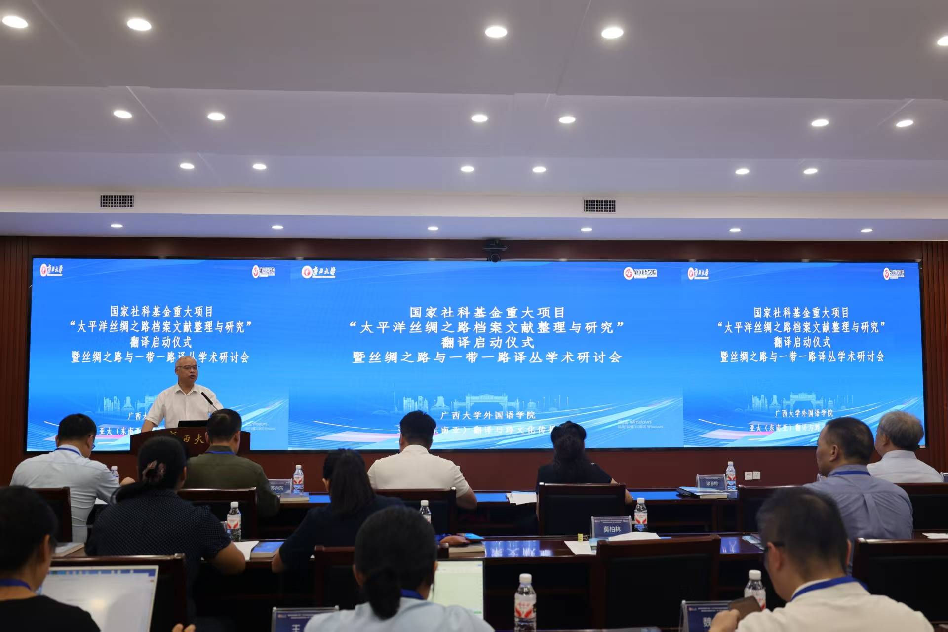 9月13日,国家社科基金重大项目“太平洋丝绸之路档案文献整理与研究”翻译启动仪式暨“丝绸之路”与“一带一路”译丛学术研讨会在beat365正版唯一官网必一举行。会议由beat365正版唯一官网必一外国语学院等联合主办,有40余位专家学者参会。