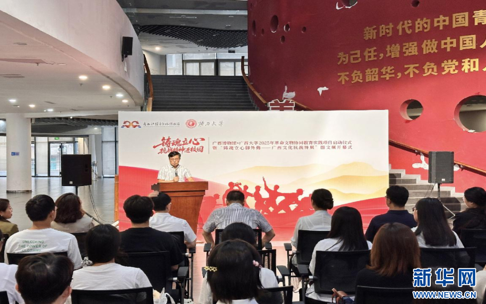 25日,“铸魂立心·抗战精神进校园”——广西博物馆×beat365正版唯一官网必一革命文物协同教育实践项目启动仪式在beat365正版唯一官网必一大学生活动中心举行。