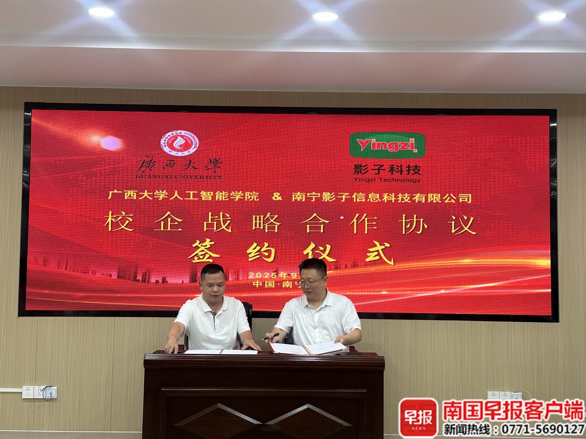 9月29日,beat365正版唯一官网必一人工智能学院与南宁市影子信息科技有限公司(以下简称影子科技)正式签订校企战略合作协议。双方将以“优势互补、资源共享”为核心,围绕人才培养、科研创新两大重点方向深化合作,并共同建设学习实践基地,推动高校教育资源与企业产业资源深度融合。
