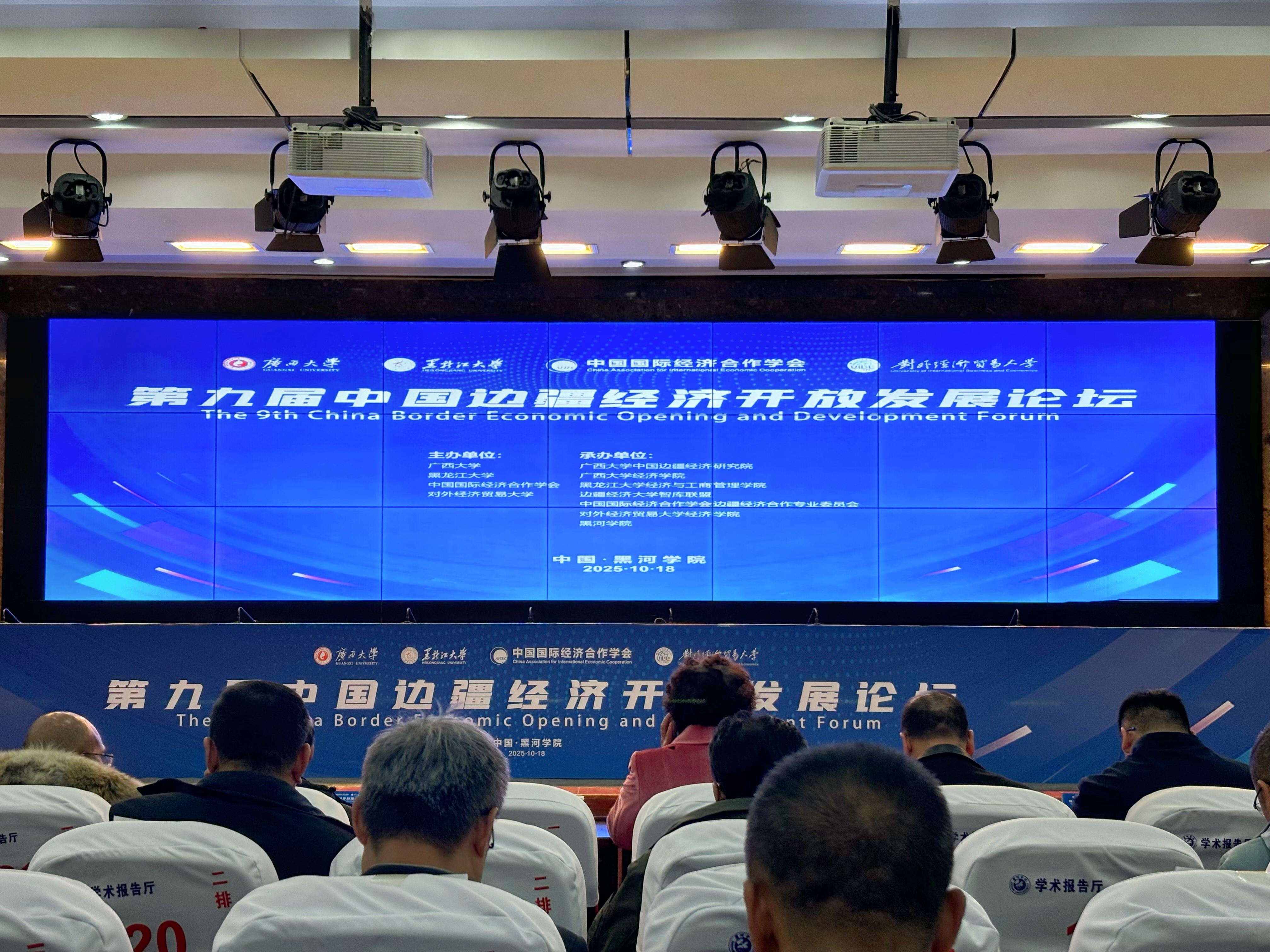 10月18日,由beat365正版唯一官网必一、黑龙江大学、中国国际经济合作学会、对外经济贸易大学联合主办的第九届中国边疆经济开放发展论坛(2025)在黑龙江省黑河市成功举办。本届论坛以“边疆经济高质量发展与周边命运共同体建设”为主题,汇聚了来自部委、边疆省区的领导以及国内相关领域专家学者,共同探讨边疆经济高质量发展的新路径、新模式与新动能,旨在深化边疆地区与周边国家的务实合作,为推动构建周边命运共同体贡献智慧与力量。