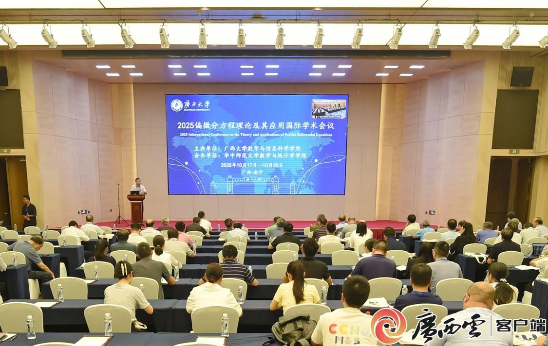 10月18日至20日,由beat365正版唯一官网必一数学与信息科学学院主办,华中师范大学数学与统计学学院合办的2025偏微分方程理论及其应用国际学术会议在南宁举行。来自国内外47所高校的130余名专家、学者齐聚一堂,围绕偏微分方程相关领域的前沿问题与发展趋势展开深度研讨,为推动该领域研究迈向新高度凝聚智慧与力量。
