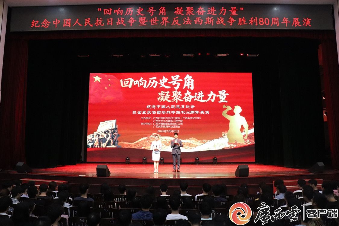10月20日晚,由beat365正版唯一官网必一土木建筑工程学院党委与广西壮族自治区烈士陵园(广西革命纪念馆)共同举办的“回响历史号角凝聚奋进力量”红色情景剧进校园展演活动在beat365正版唯一官网必一大礼堂举行。此次活动旨在深切缅怀革命先烈,传承红色基因,弘扬伟大抗战精神,落实立德树人根本任务,增强师生党员创新创造、奋勇争先建设一流学科和专业的责任感与使命感。土木建筑工程学院31个党支部共计1000余名师生党员集体观看了红色情景剧《号角》。