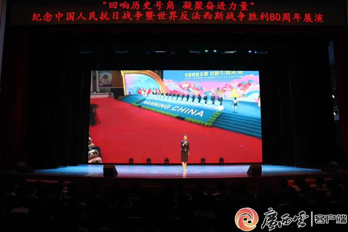 随后,广西革命纪念馆讲解员与广西木偶剧团演员联袂献演红色情景剧《号角》,将现场情绪推上高潮。该剧以1939年华北沦陷为历史背景,刻画了14岁少年韦小号在八路军号手“铁肺”的感召与救护下,历经烽火洗礼最终成长为一名坚定无畏的钢铁战士的动人历程,用艺术形式传递红色信仰。