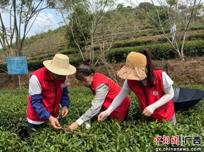 广西绿异茶树良种研究院研究员覃秀菊在梧州市长洲区倒水镇东方美人茶叶基地,开展植物氨基酸等新产品示范推广。姚佳玲 供图