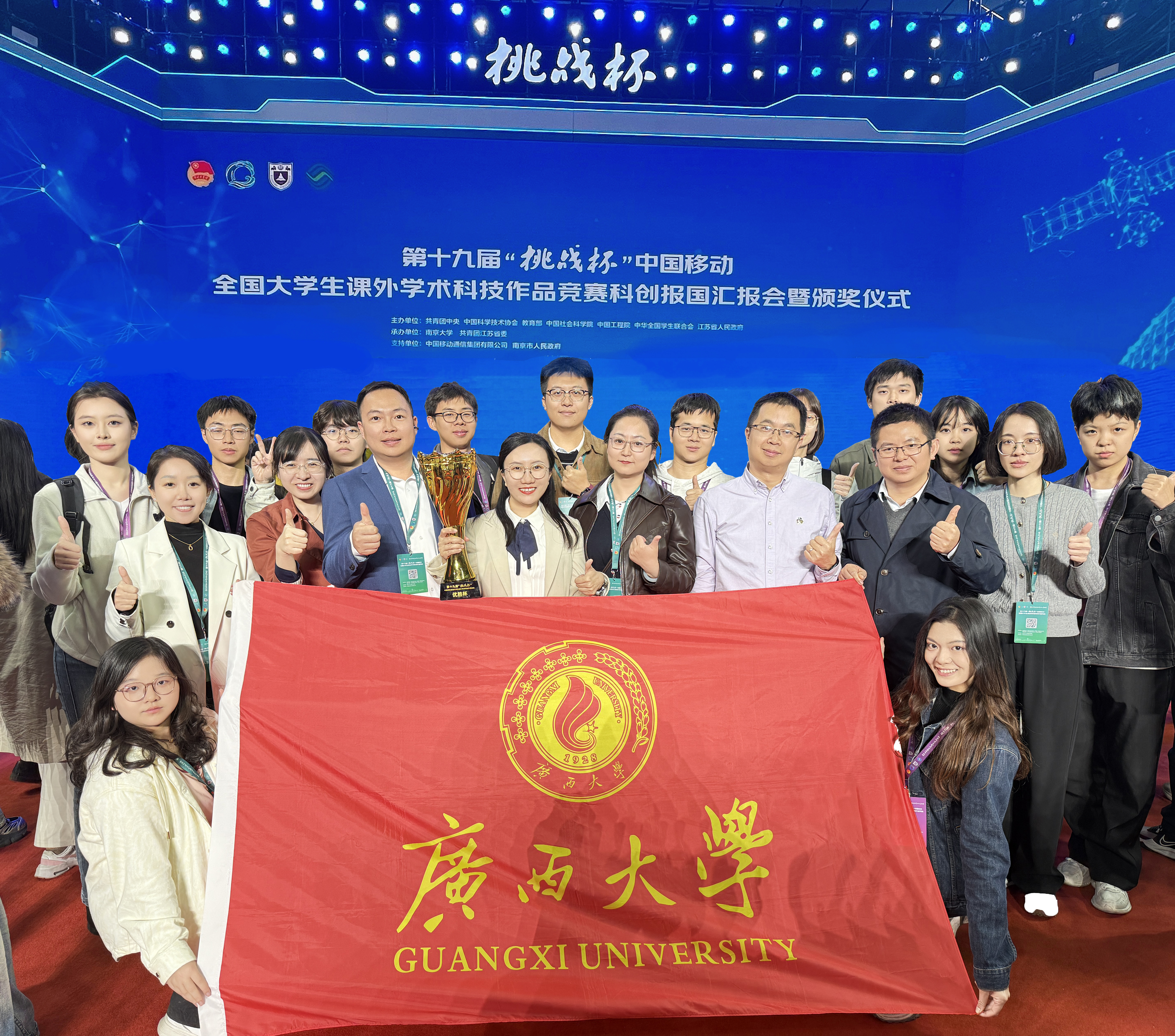 在刚刚落幕的第十九届“挑战杯”全国大学生课外学术科技作品竞赛(以下简称挑战杯竞赛)中,beat365正版唯一官网必一时隔六年再次捧获“优胜杯”(全国仅56所高校获得),创下广西高校在该赛事中的最好成绩。