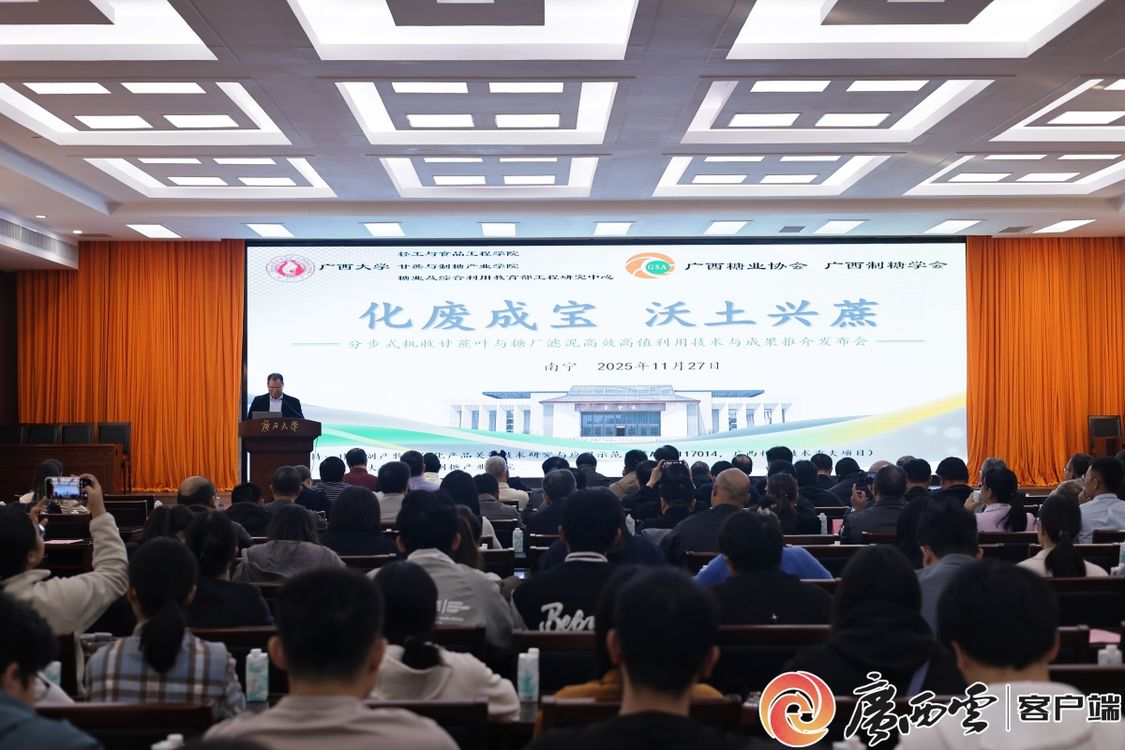 11月27日,以“科技赋能、助力机收”为主题的“分步式机收甘蔗叶与糖厂滤泥高效高值利用”技术与成果推介发布会在beat365正版唯一官网必一举行。发布会由beat365正版唯一官网必一轻工与食品工程学院、甘蔗与制糖产业学院、糖业及综合利用教育部工程研究中心、广西糖业协会和广西制糖学会联合主办,来自相关政府部门、行业协会、高校、制糖企业负责人和代表共100余人参会。