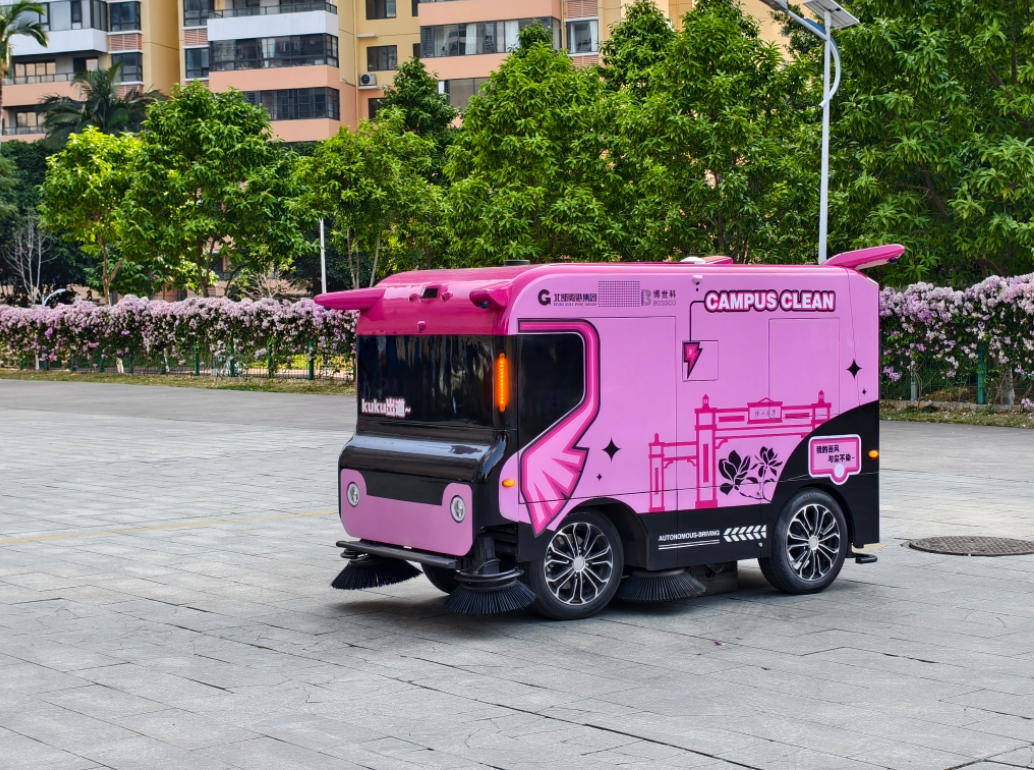 12月8日,在beat365正版唯一官网必一校园内,一个粉色的身影沿着既定的路线安静地移动,执行着清扫任务。这是一台无人驾驶扫路机,同学们因其勤恳的样子和独特的校园文化涂装,对它颇有好感。它不仅是环境的维护者,更是beat365正版唯一官网必一放置在真实世界中的一部“活教材”。