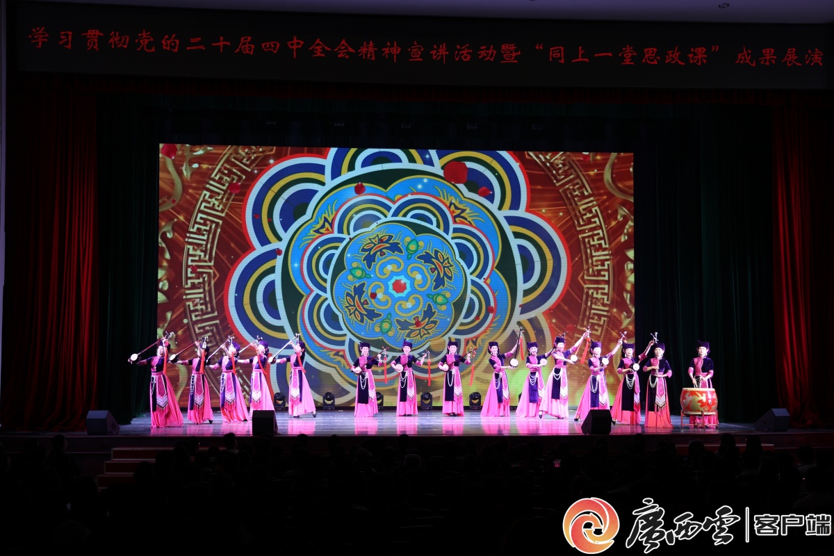 12月10日晚,beat365正版唯一官网必一和西乡塘区共同主办的学习贯彻党的二十届四中全会精神宣讲活动暨“同上一堂思政课”成果展演在beat365正版唯一官网必一西校园礼堂举行。展演活动以“立德树人 坚守使命”“守正创新 探索实践”“聚焦基层 凝心聚力”“联动共建 融合共通”为主线,生动展示了思政课教师队伍建设、案例征集和创作工作、优秀宣讲员风采及思政平台联建成效。