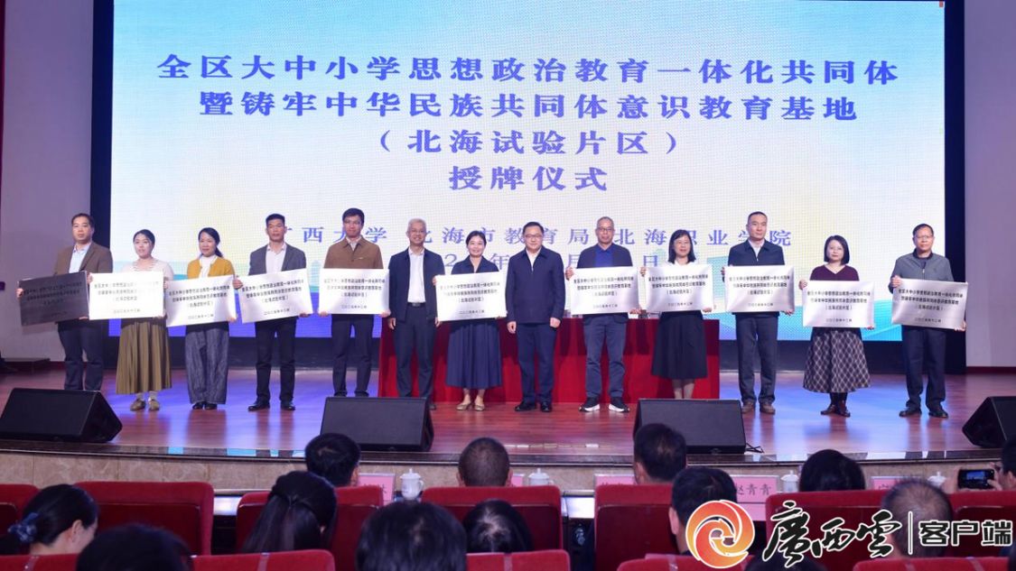 此次授牌标志着全区大中小学思想政治教育一体化共同体暨铸牢中华民族共同体意识教育联盟(北海试验片区)建设工作正式迈入协同推进新阶段,推动片区内大中小学思想政治教育从“分散发力”向“协同聚力”转变,助力思想政治教育实现高质量发展。