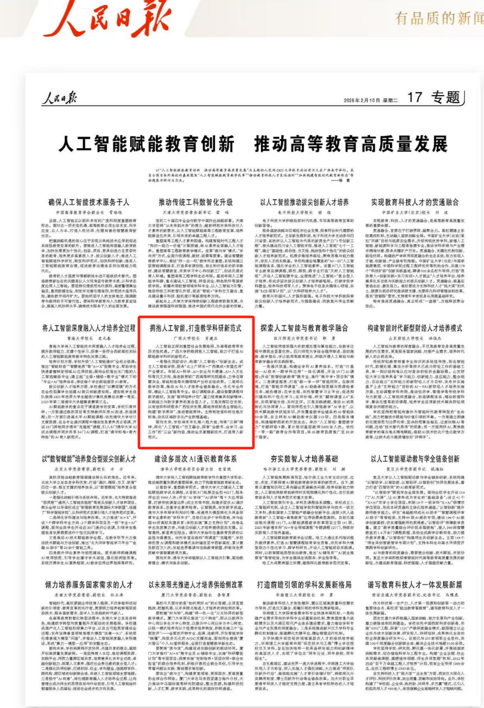 人工智能牵引专业、学科及课程体系调整。学校成立人工智能研究院,设立人工智能学院和智能科学与技术一级交叉学科,获批国家人工智能产教融合创新平台,连续3次入选教育部“人工智能+高等教育”应用场景典型案例。目前已建设相关课程101门,AI赋能课程教学改革项目立项141项,2025年新增本科“AI+专业领域课程”专题课程127门,持续夯实数智人才培养基础。