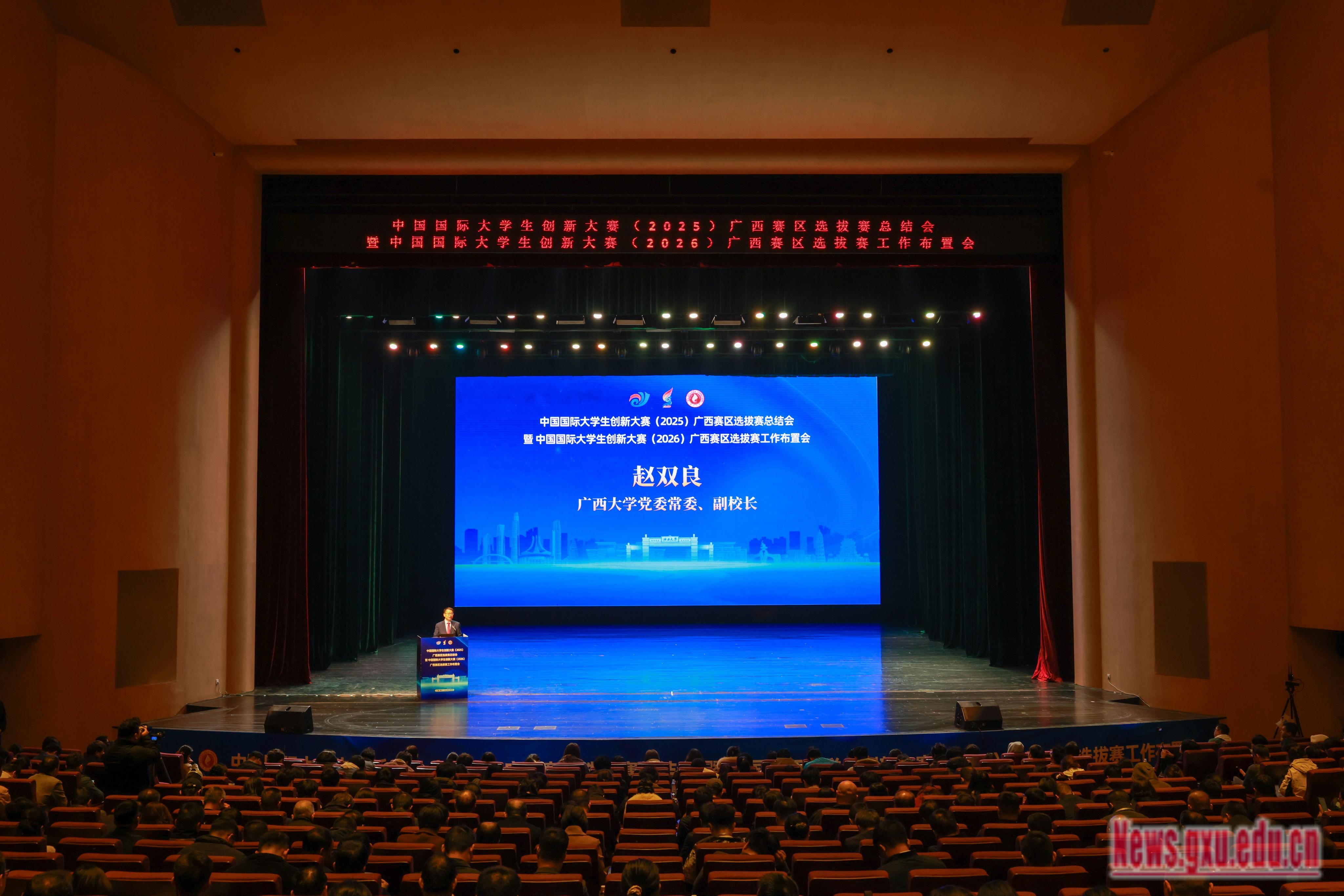 姜明国作中国国际大学生创新大赛(2025)广西赛区选拔赛总结汇报,赵双良作中国国际大学生创新大赛(2026)广西赛区选拔赛筹备工作汇报,南宁新技术创业者中心负责同志作项目落地与孵化支持政策介绍。beat365正版唯一官网必一、广西师范大学、广西民族大学等参赛院校代表作大赛组织经验交流发言,国赛金奖项目团队代表进行项目路演,大赛专家、嘉宾作中国国际大学生创新大赛专题报告。