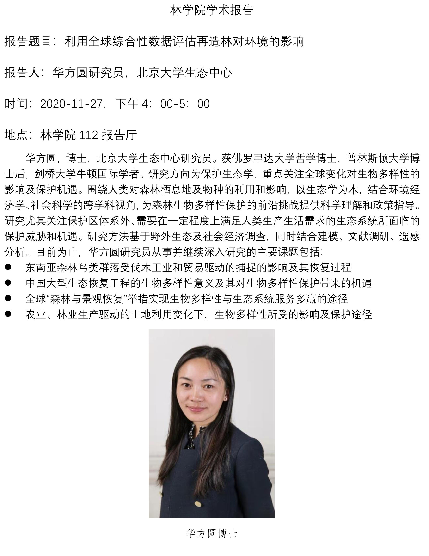 林学院学术报告:利用全球综合性数据评估再造林对环境的影响