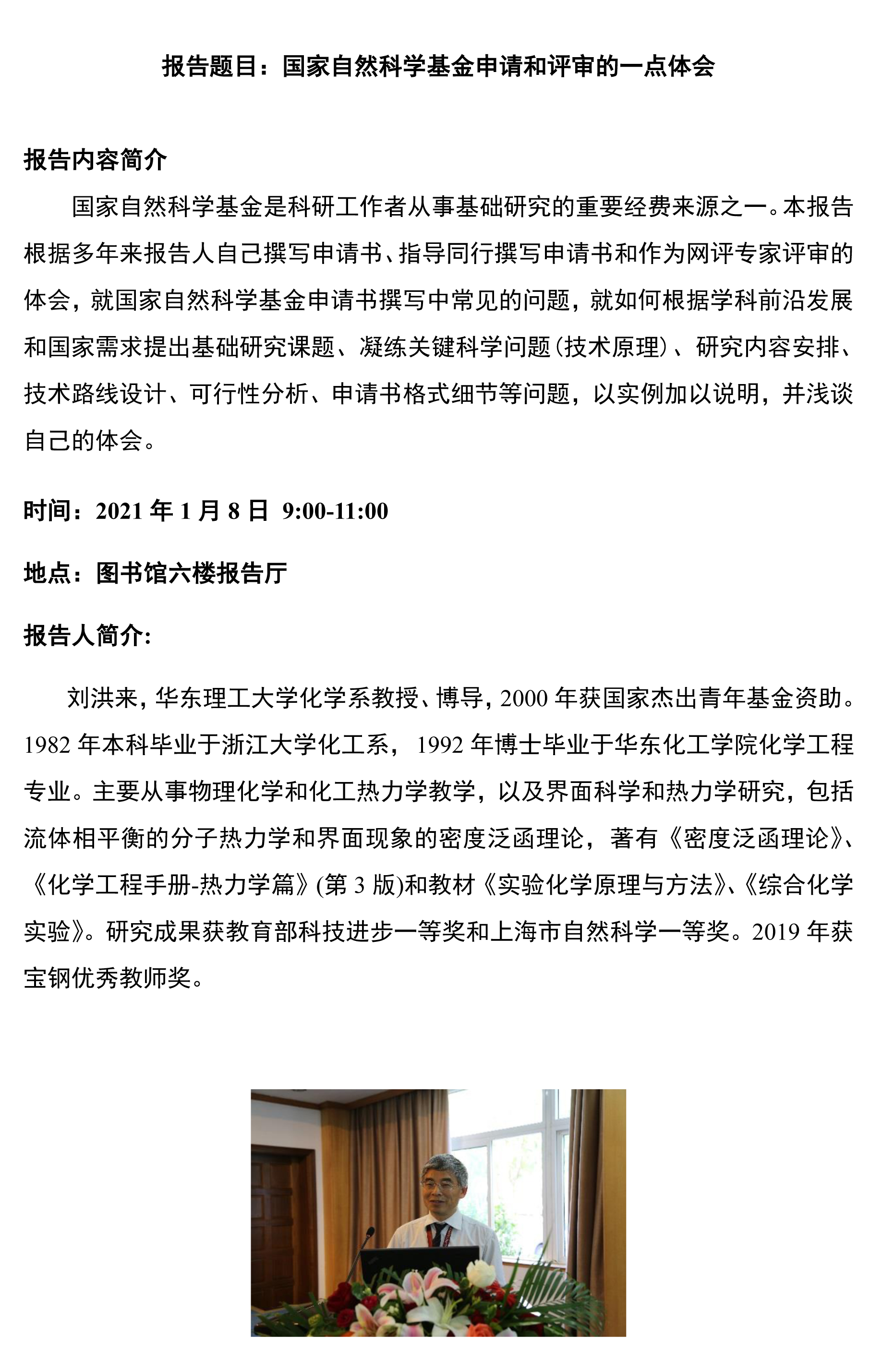 报告题目:国家自然科学基金申请和评审的一点体会