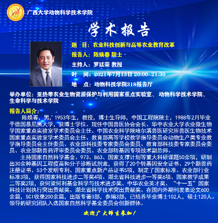 动物科学技术学院学术报告:农业科技创新与高等农业教育改革