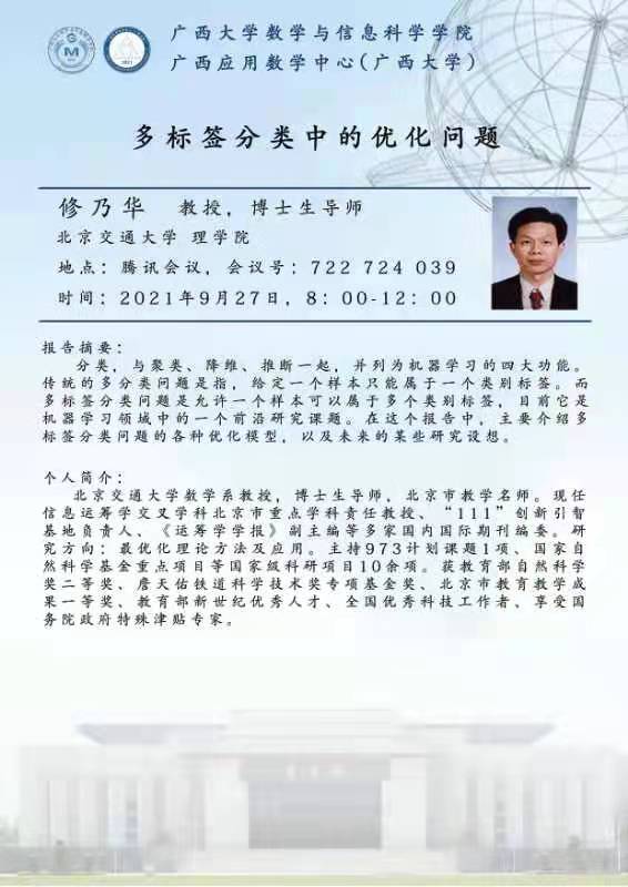上一条:数学与信息科学学院:Some results on the least Q-eigenvalue of a graph