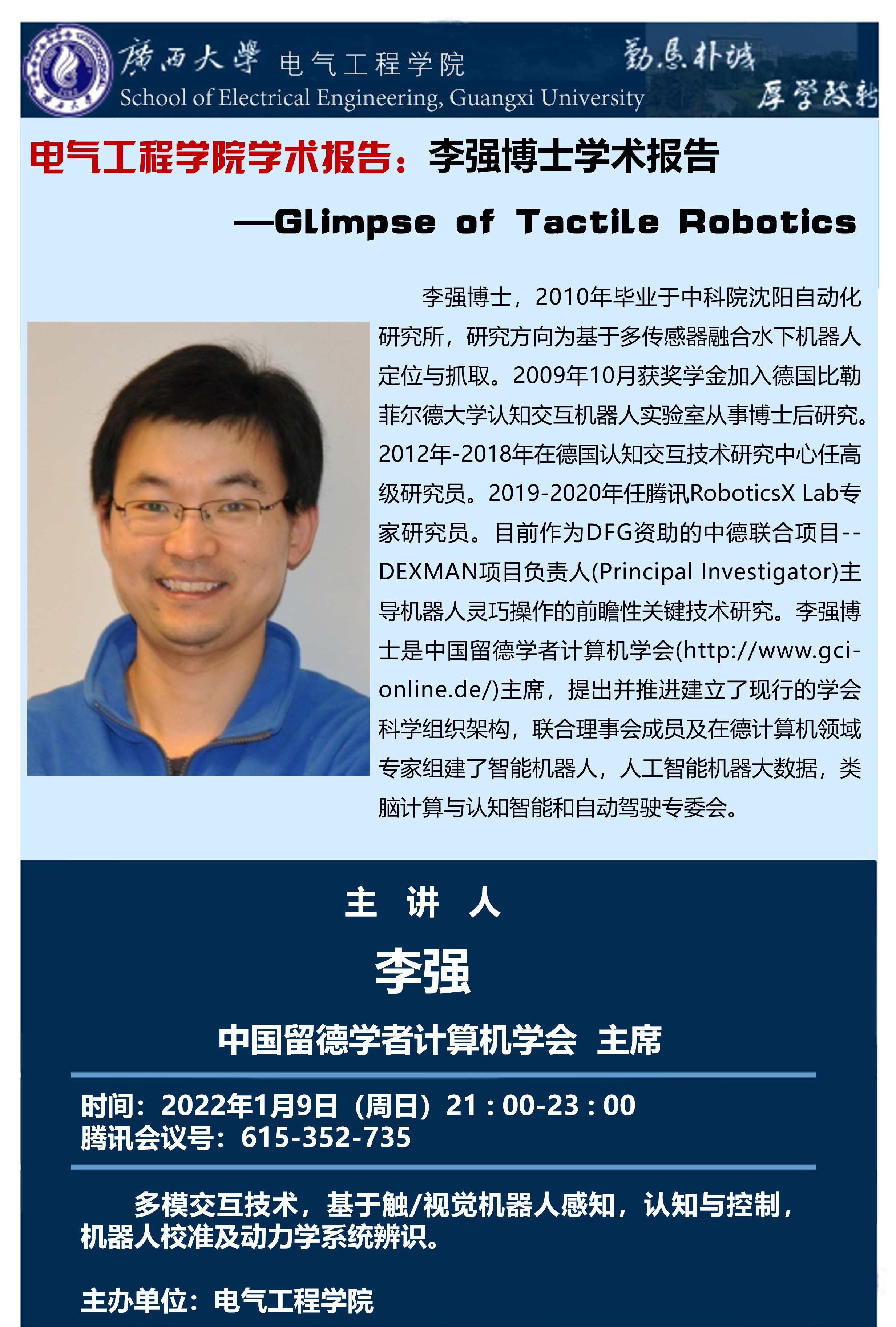 电气工程学院学术报告:Glimpse of Tactile Robotics