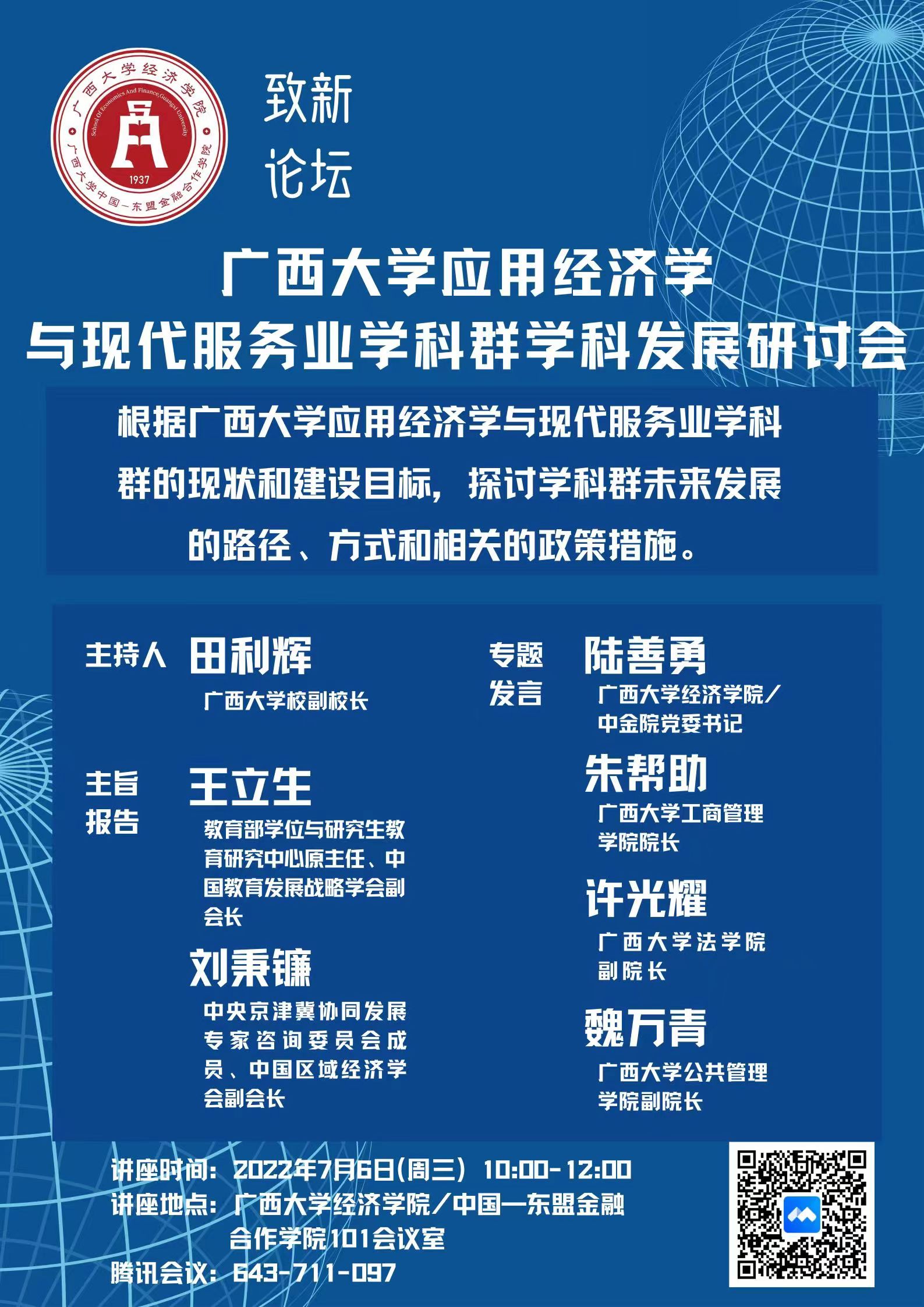 经济学院/中国—东盟金融合作学院致新论坛:beat365正版唯一官网必一应用经济学与现代服务业学科群学科发展研讨会