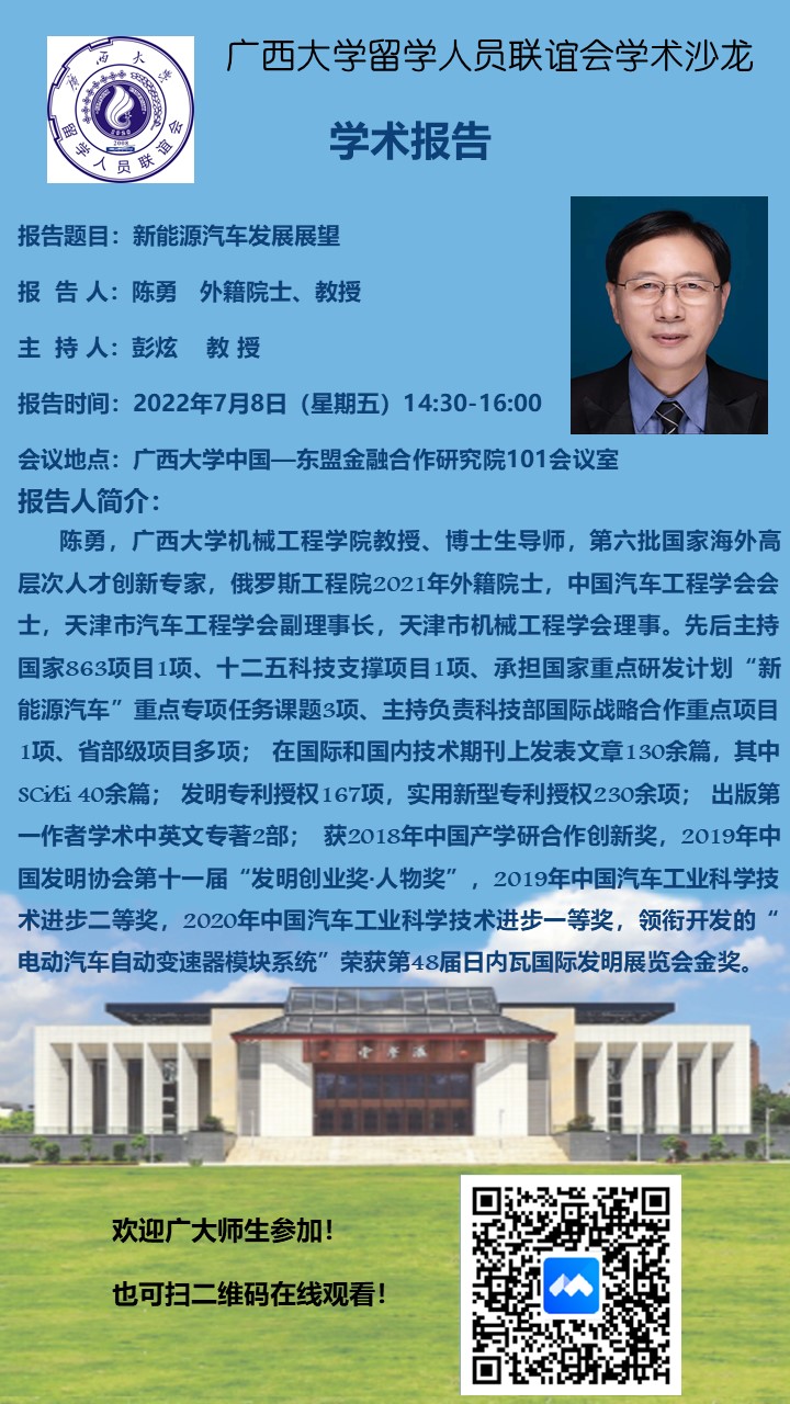 beat365正版唯一官网必一留学人员联谊会学术沙龙:新能源汽车发展展望