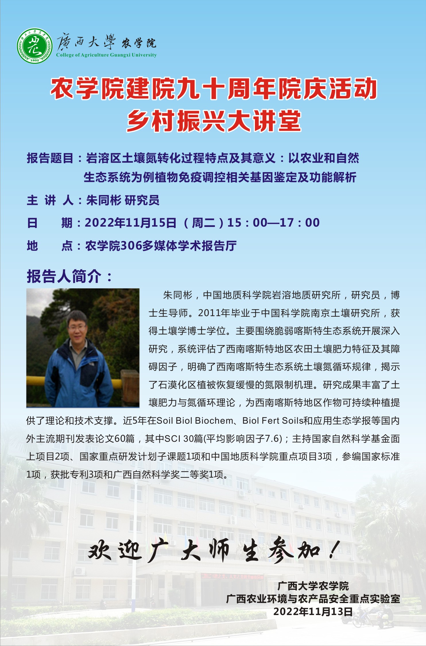 农学院建院九十周年院庆活动 乡村振兴大讲堂