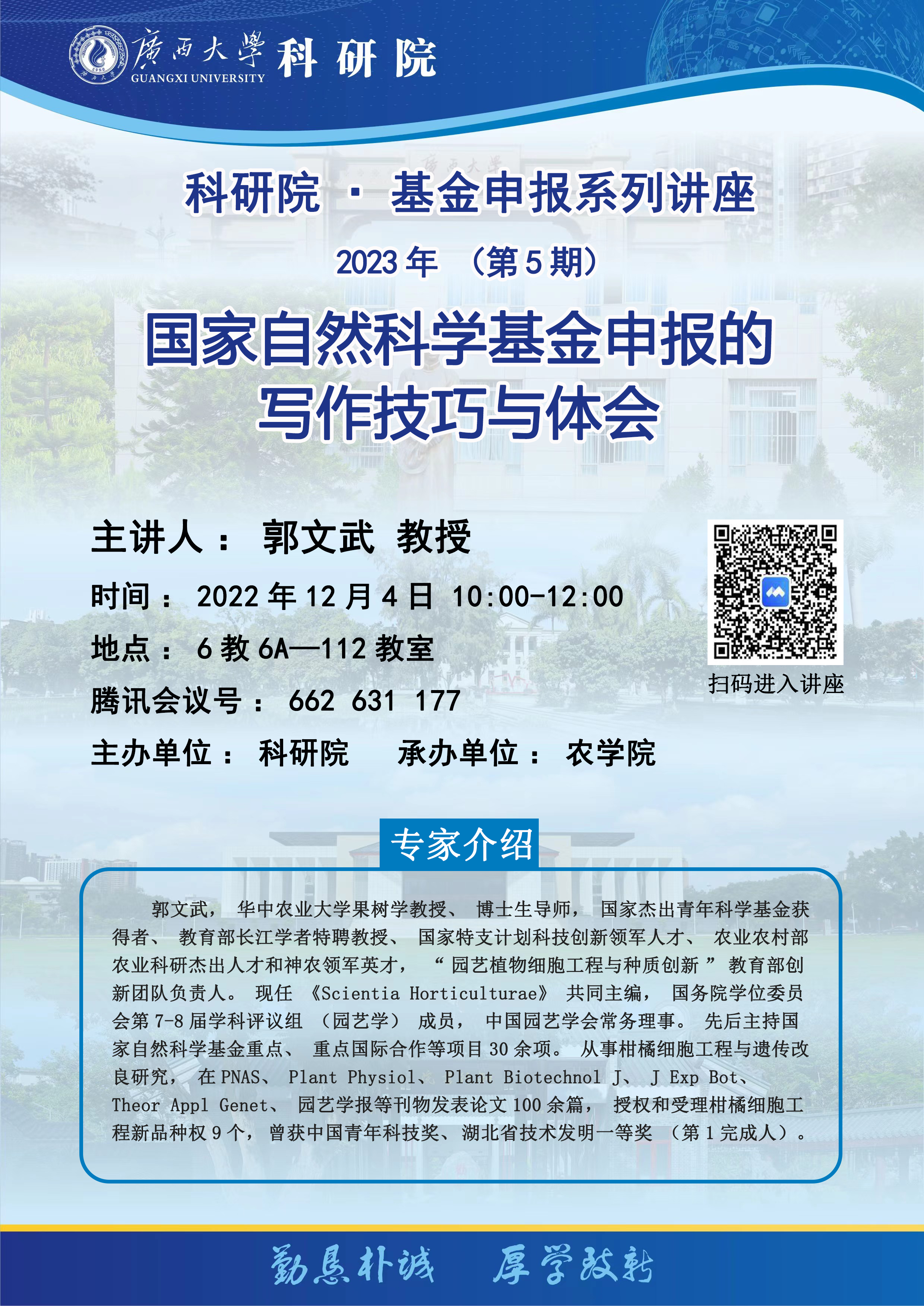 科研院·基金申报系列讲座2023年(第5期)国家自然科学基金申报的写作技巧与体会