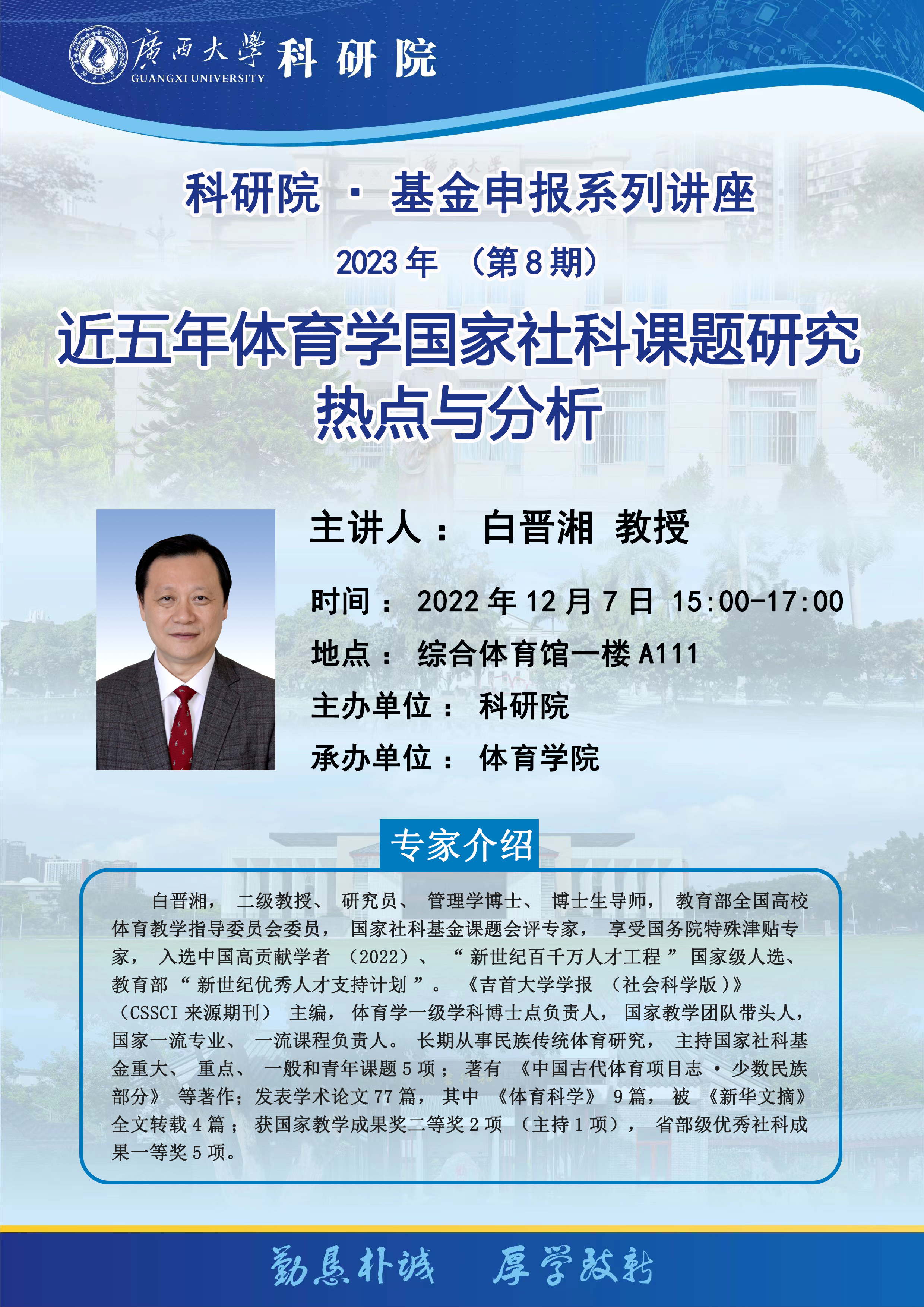 下一条:科研院·基金申报系列讲座 2023年(第7期)体育学国家社科基金项目申报的“掘”与“避”
