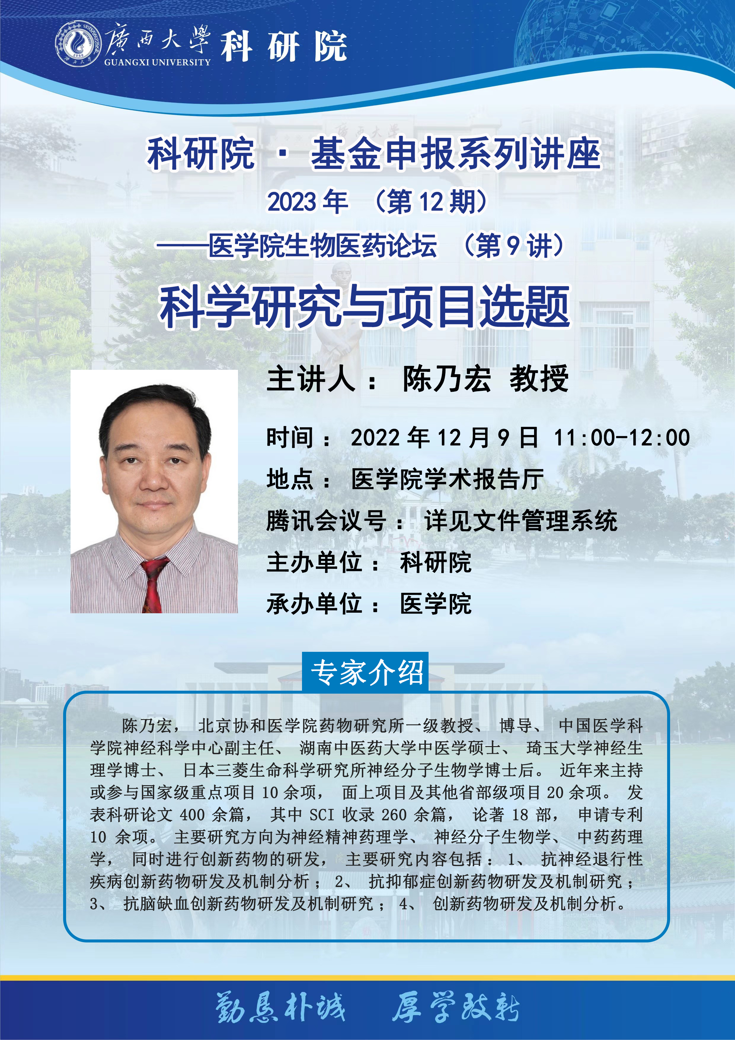 科研院·基金申报系列讲座 2023年(第12期)科学研究与项目选题