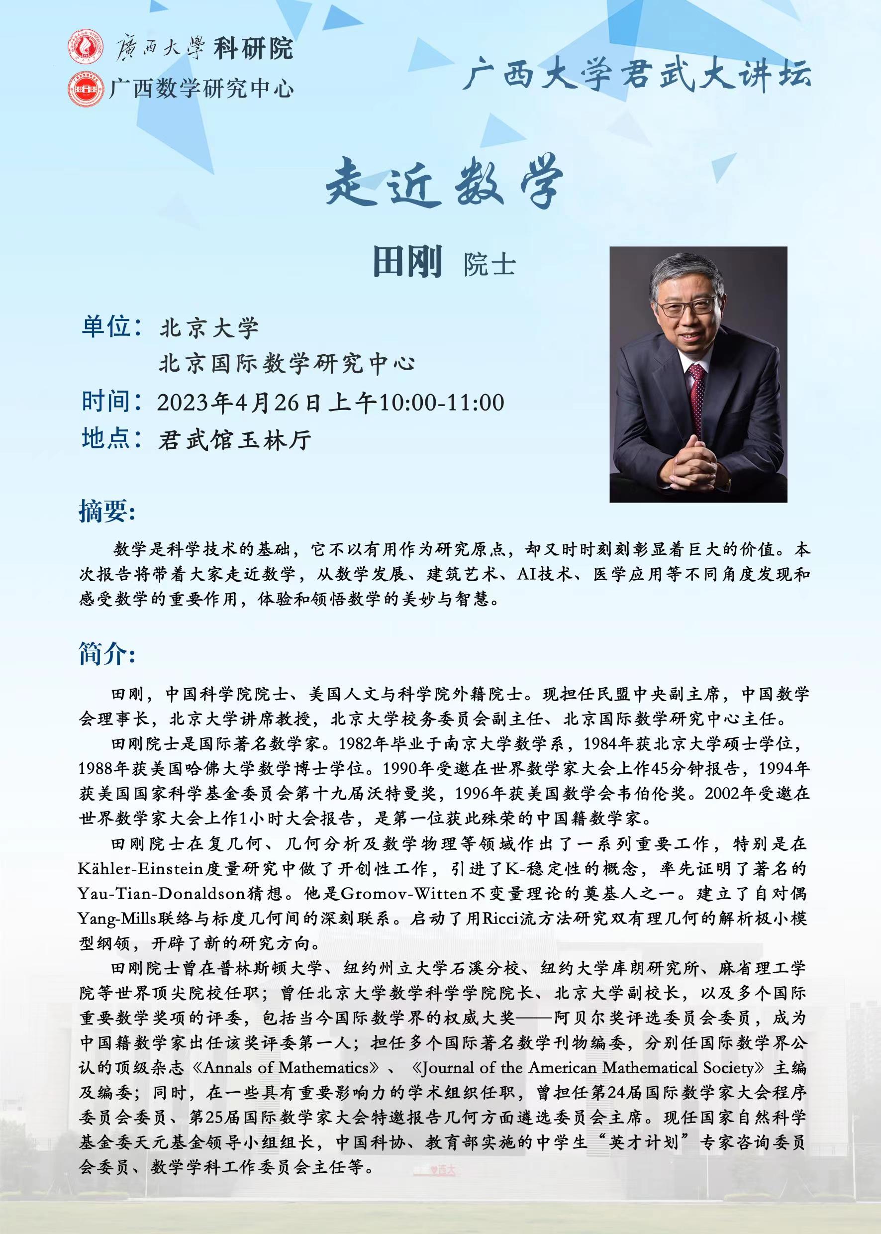beat365正版唯一官网必一君武大讲坛:走近数学