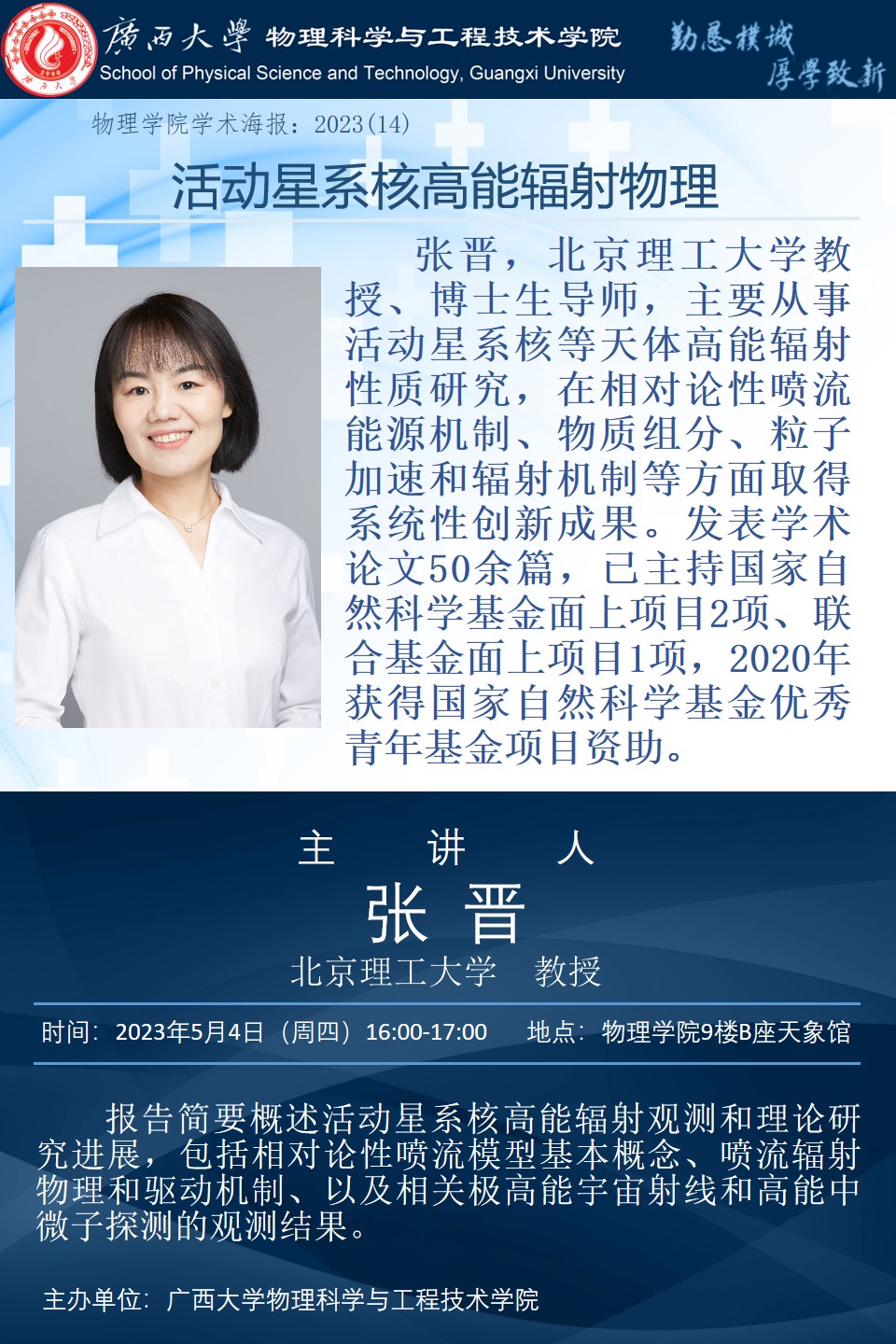 下一条:物理学院2023年学术报告系列之13:Probing QCD critical point and induced gravitational wave by black hole physics