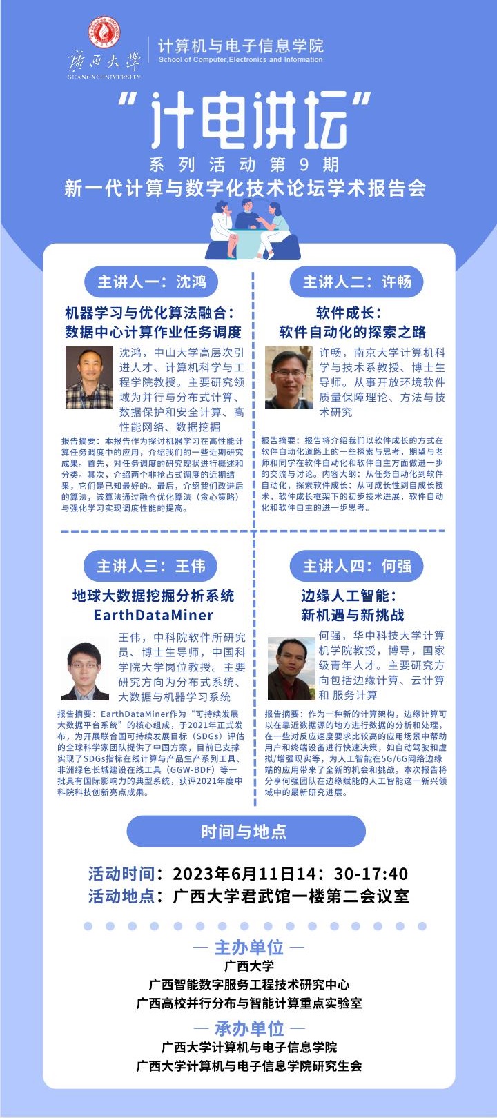 计电讲坛系列活动第9期:新一代计算与数字化技术论坛学术报告会