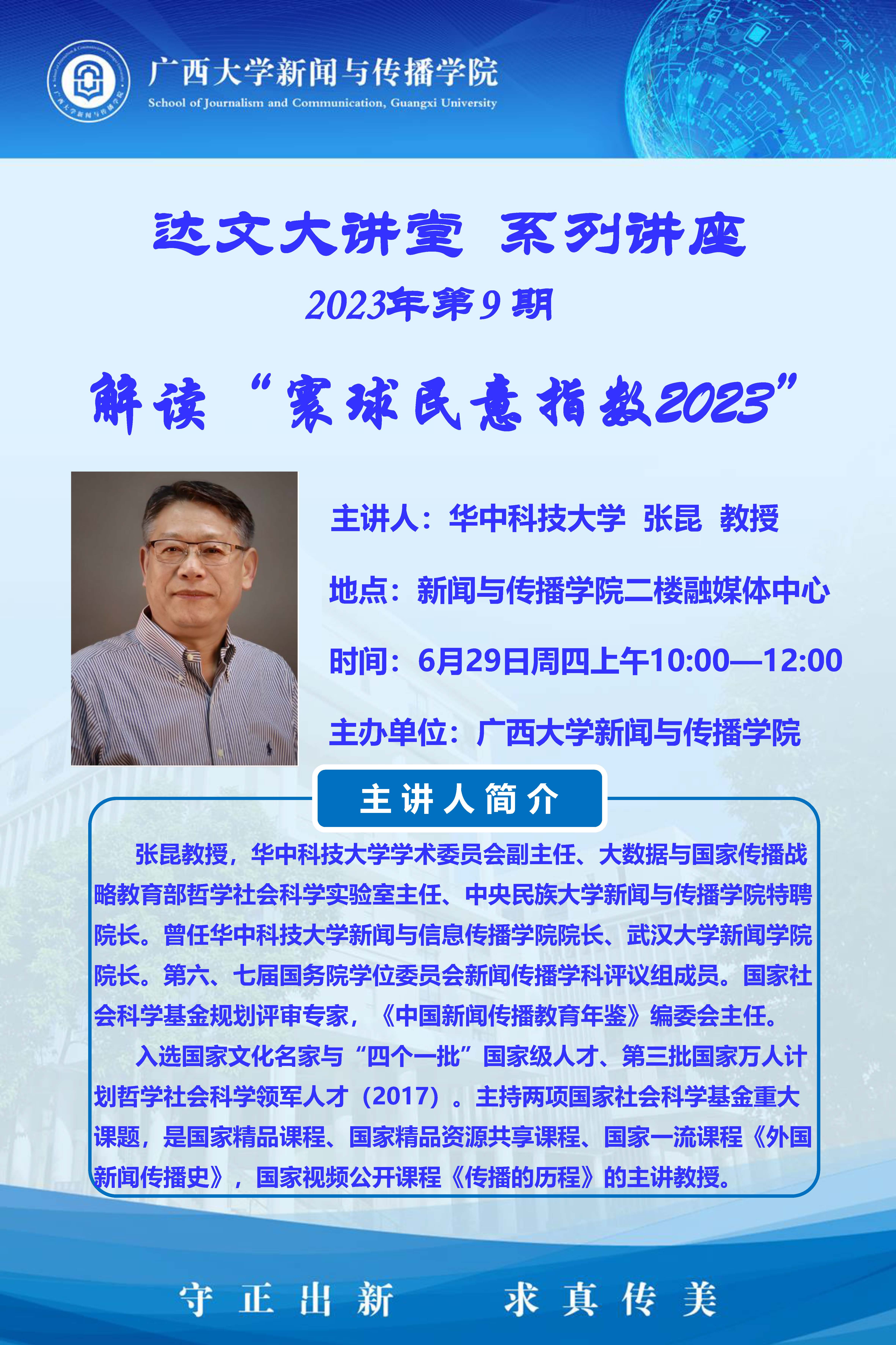 新闻与传播学院达文大讲堂系列讲座(第九期):解读“寰球民意指数2023”