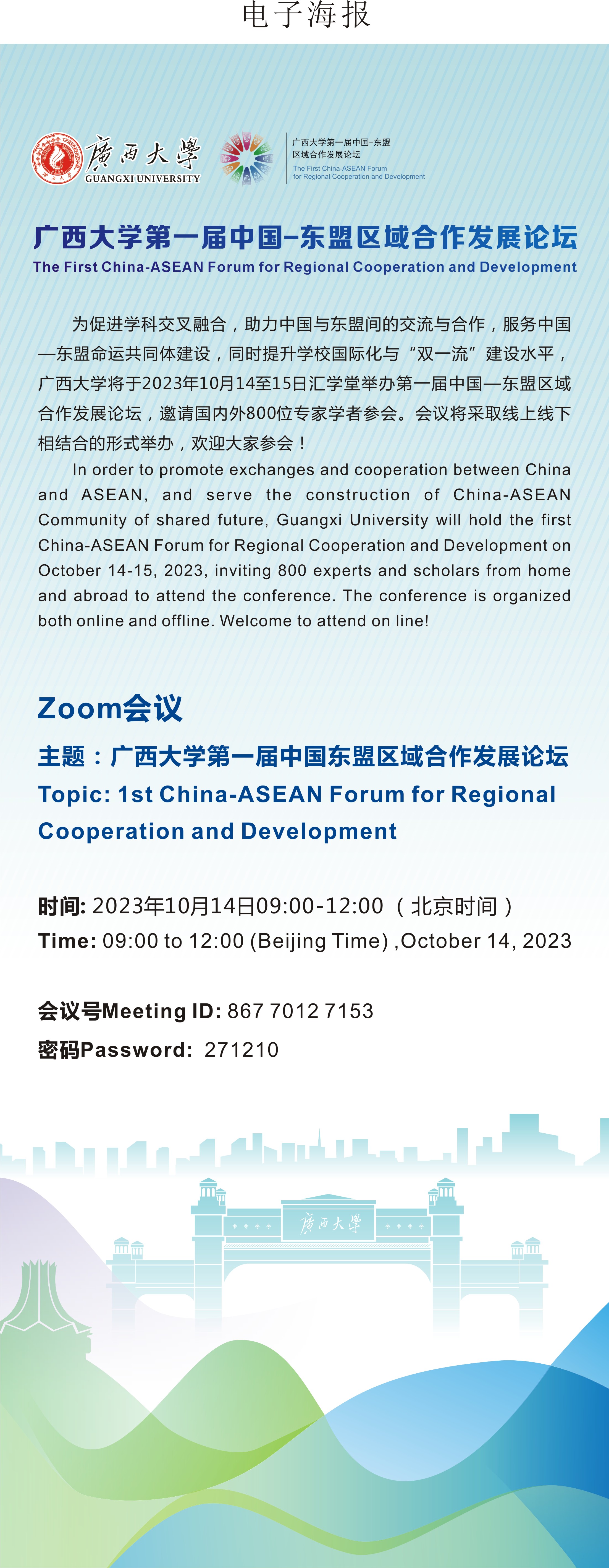 Zoom会议(线上线下结合):beat365正版唯一官网必一第一届中国东盟区域合作发展论坛