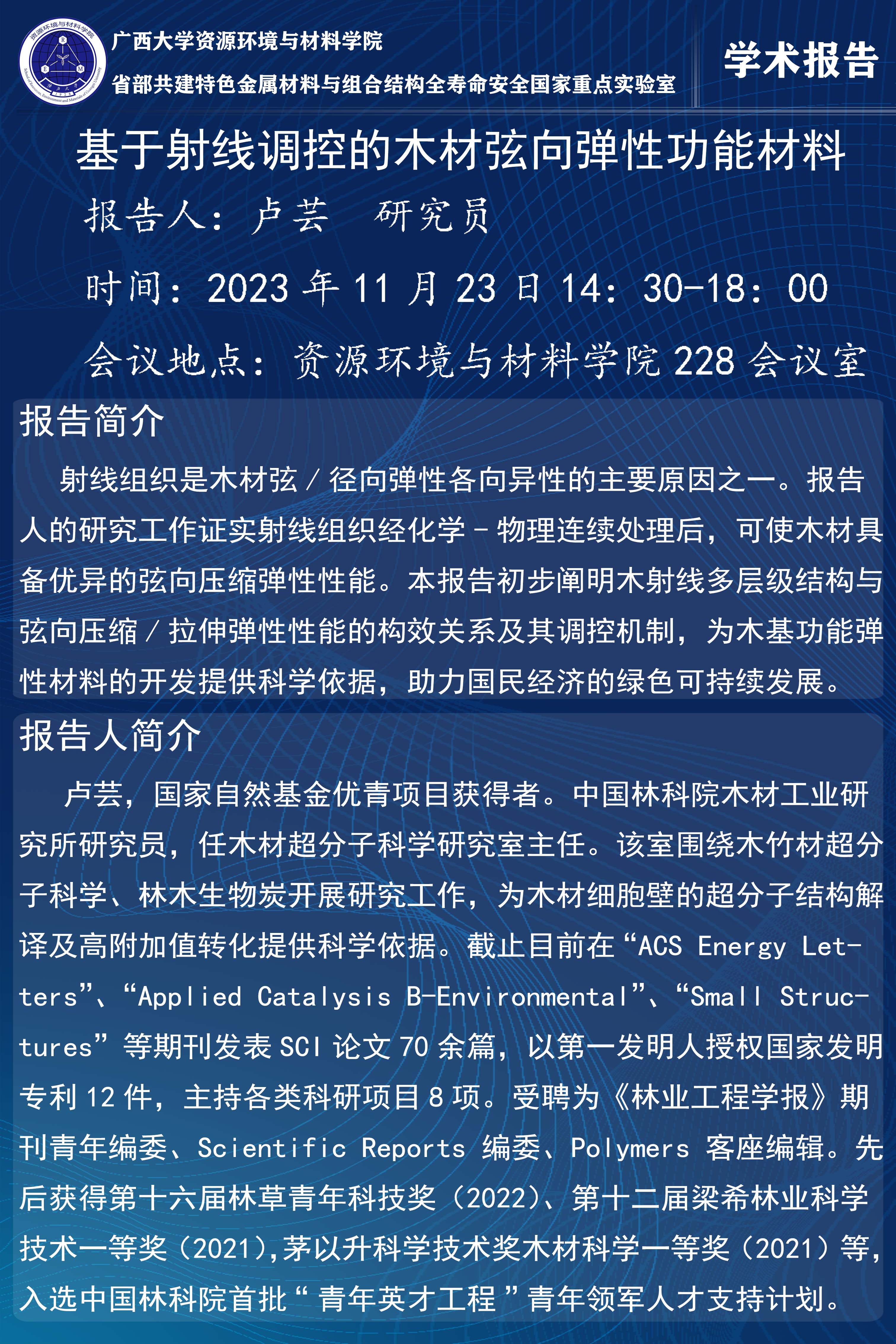 资源环境与材料学院学术报告:基于射线调控的木材弦向弹性功能材料