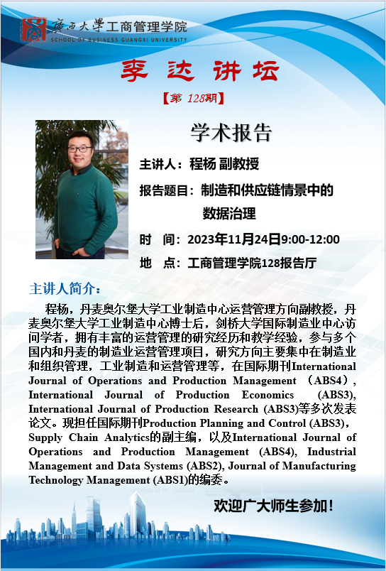 李达讲坛第128期学术报告:制造和供应链情景中的数据治理