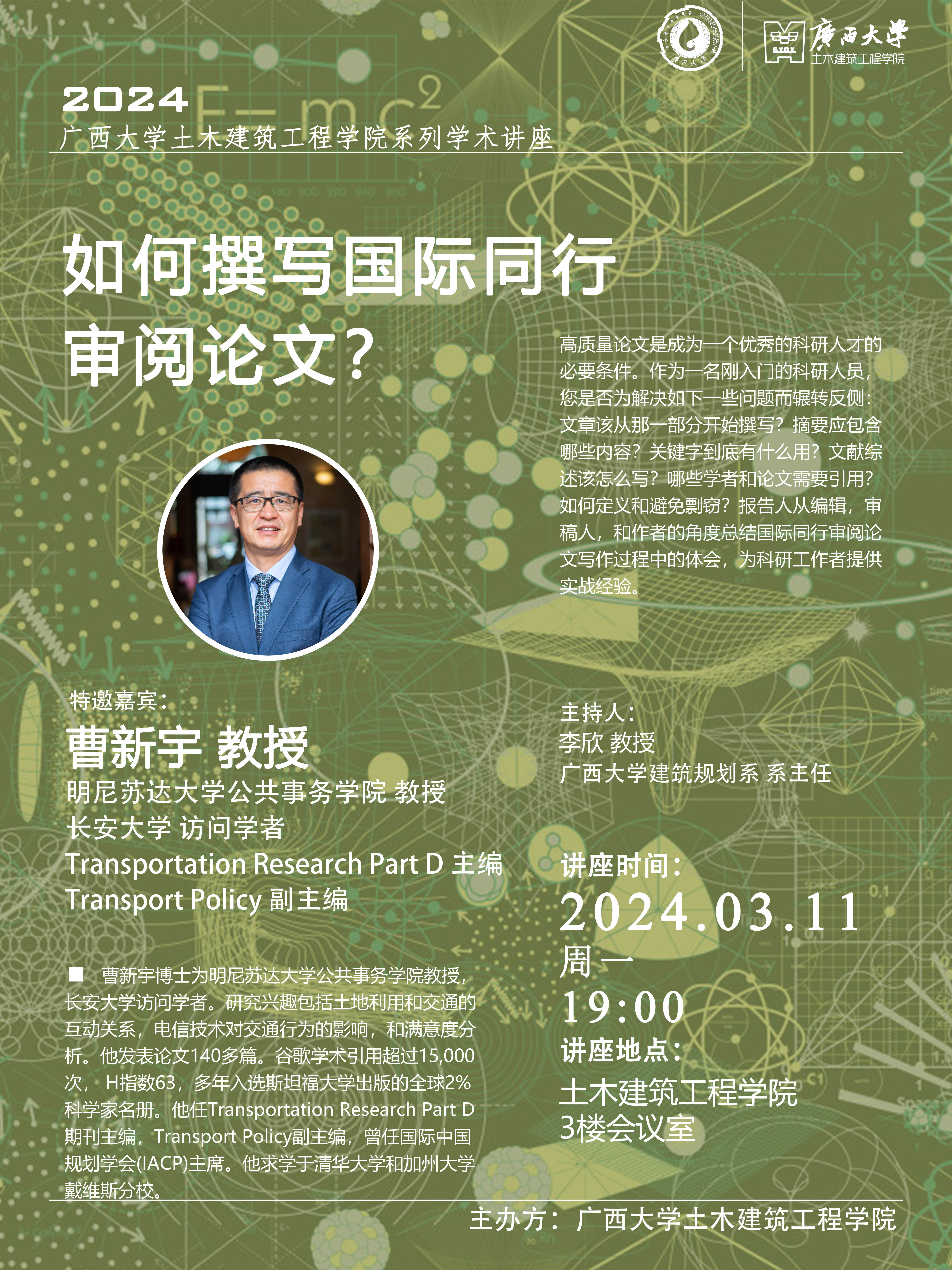 曹新宇 长安大学 教授 明尼苏达大学公共事务学院 教授 Transportation Rrsearch PartD 主编 Transport Policy 副主编
